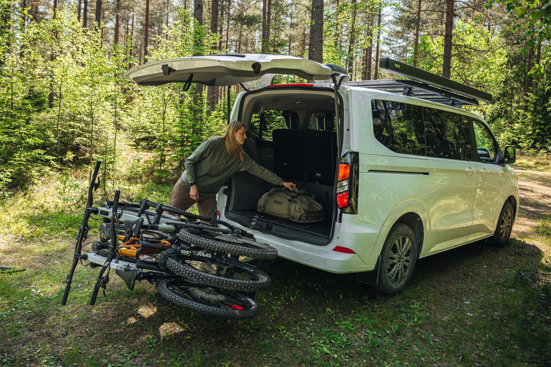 With bikes mounted, the boot is accessible with a smart foot pedal tilt.