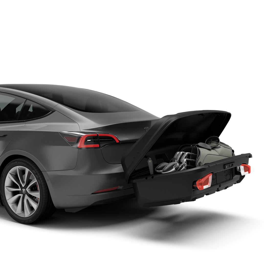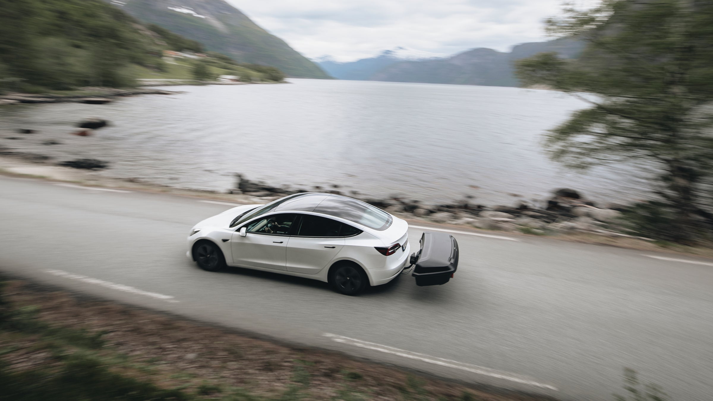 The Arcos cargo box is perfect for electric vehicles such as Teslas. Unlike roof boxes, the effect on the electric range should be negligible compared to a roof mounted box